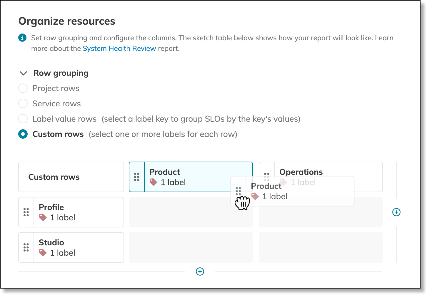 snapshot.dateTimepoint is past.snapshot.rrulepoint is set to past.snapshot.timeZoneAmerica/New_York).systemHealthReview.rowGroupByproject—groups rows by project.service—groups rows by service.label—groups rows by the values of a specific label key. Requires defining the label key insystemHealthReview.labelRows.customRows—creates custom rows defined by specific labels. Requires defining each row insystemHealthReview.labelRows[n].